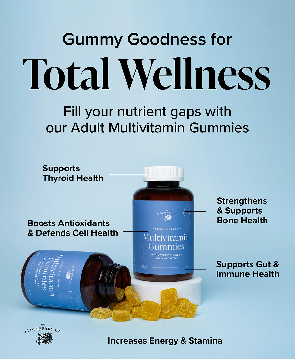 Adult Multivitamin Gummies with Vitamins A, B, E, K2 and Zinc