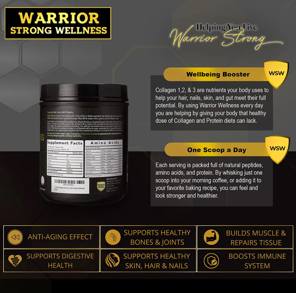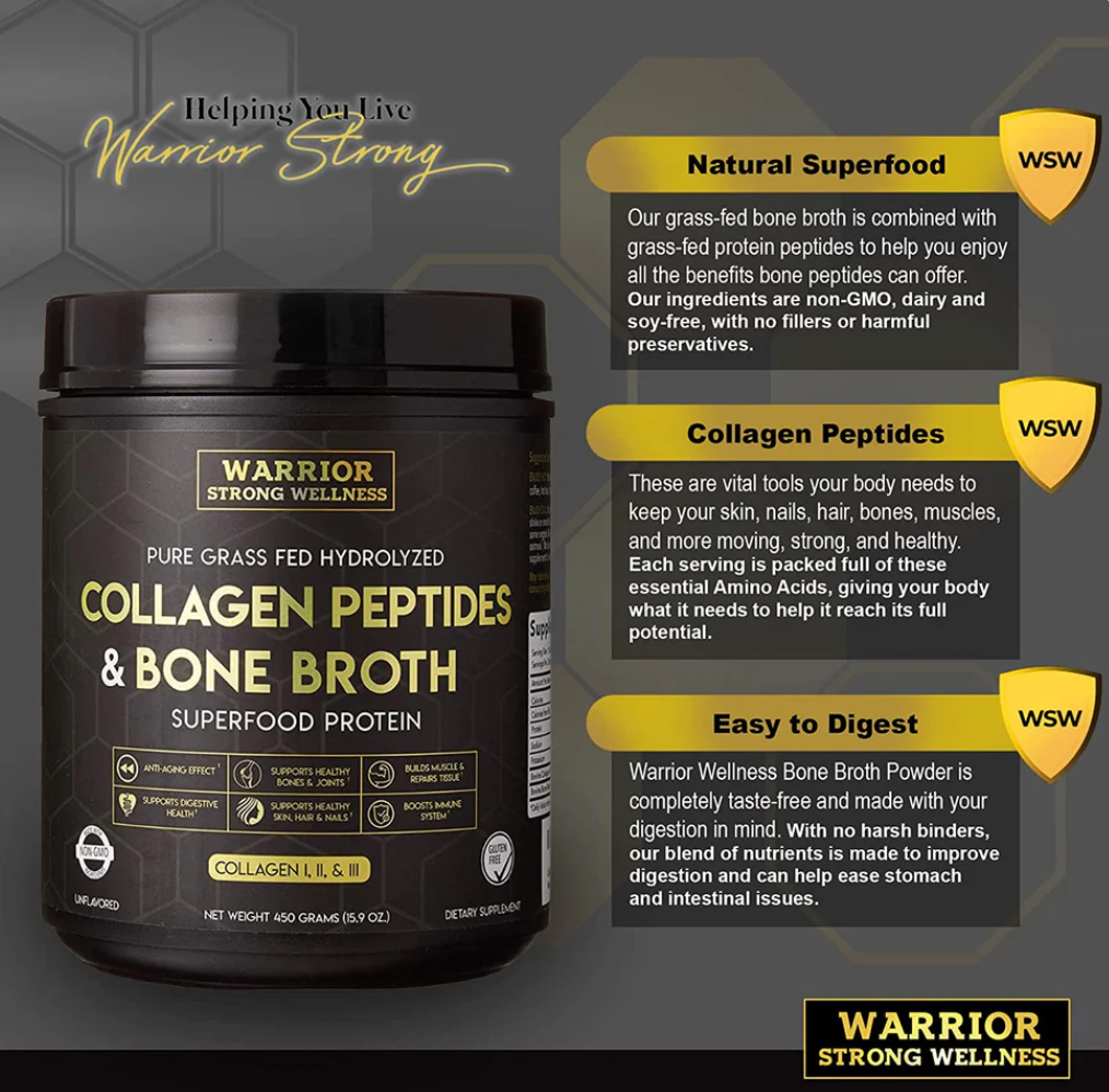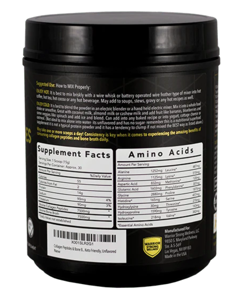 Ingredients: Bovine Collagen Peptides and Bovine Bone Broth